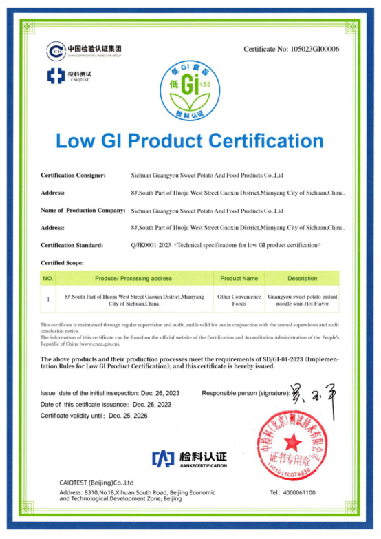 光友薯業(yè)對此次酸辣粉獲得低GI認(rèn)證表示非常榮幸和自豪,光友薯業(yè)表示,將繼續(xù)秉持“健康、美味、創(chuàng)新”的理念,不斷推出更多符合消費者需求的健康食品,為人們的健康生活貢獻更多力量。