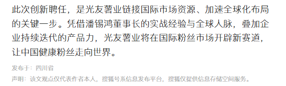 轉載搜狐網-光友薯業(yè)攜手國際營銷顧問 讓中國健康粉絲登陸全球超市