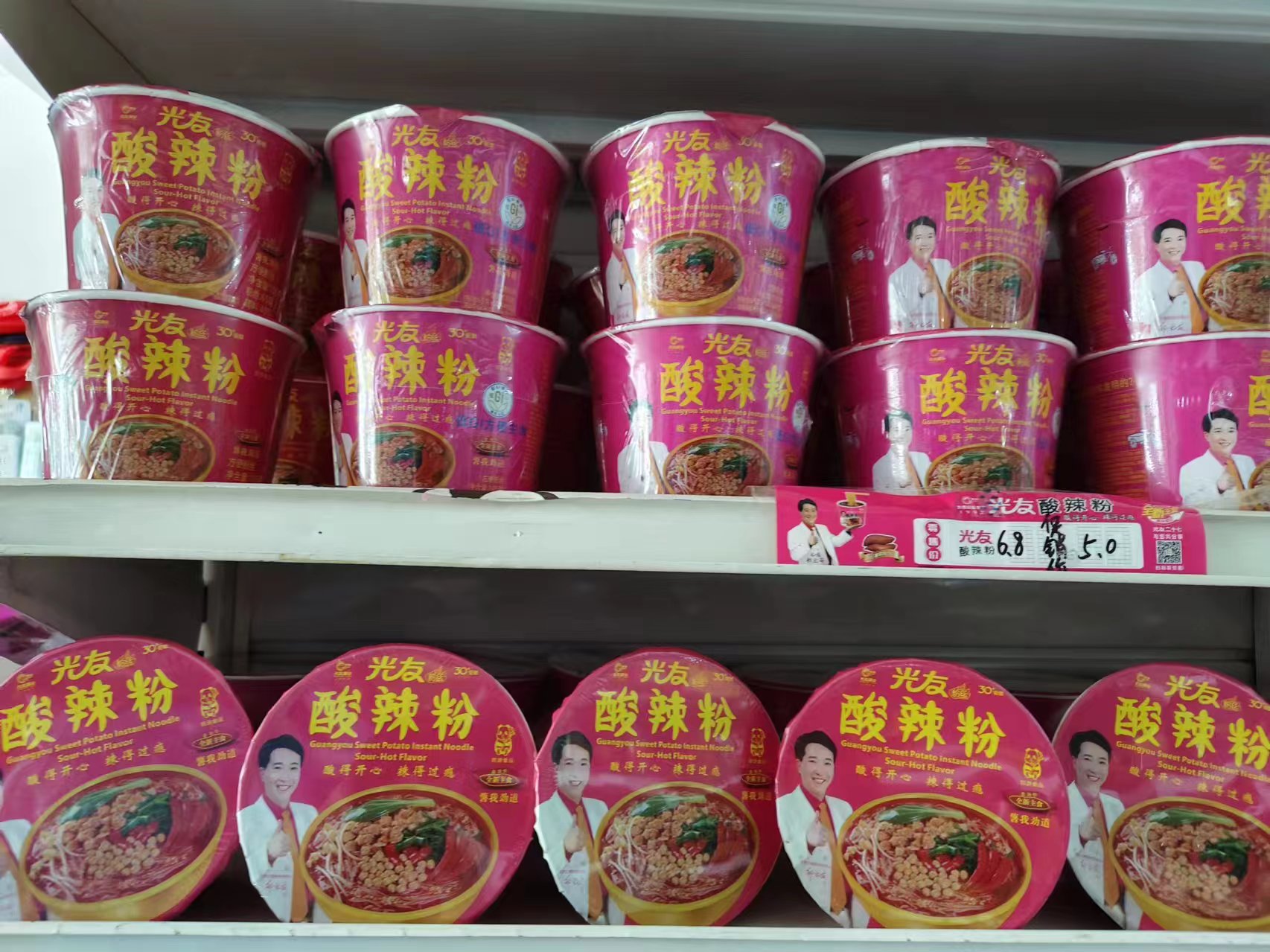 光友酸辣粉絲紅薯粉絲網(wǎng)紅方便粉絲即泡即食非油炸麻辣細(xì)粉絲6杯
